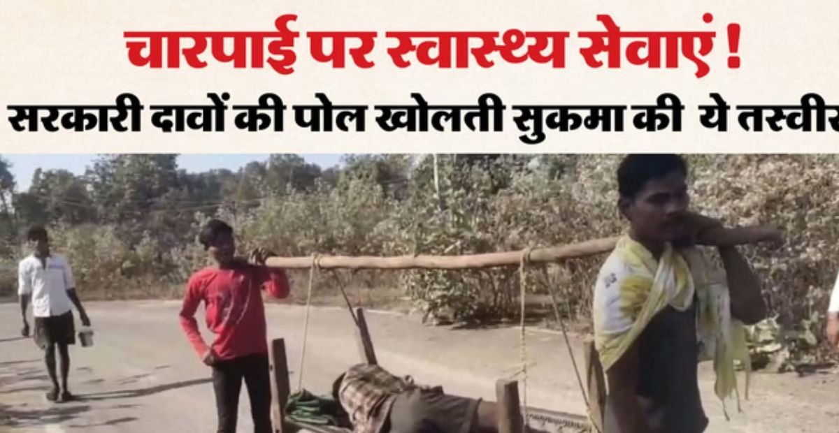छत्तीसगढ़ के सुकमा जिले से स्वास्थ्य सेवाओं की बदहाल तस्वीर सामने आई है। एंबुलेंस समय पर उपलब्ध न होने के कारण परिजनों और ग्रामीणों को एक मरीज को करीब दो किलोमीटर तक खाट पर ढोकर अस्पताल पहुंचाना पड़ा। इस घटना ने दूरस्थ आदिवासी क्षेत्रों में स्वास्थ्य सुविधाओं की जमीनी हकीकत और सरकारी दावों पर सवाल खड़े कर दिए हैं।
